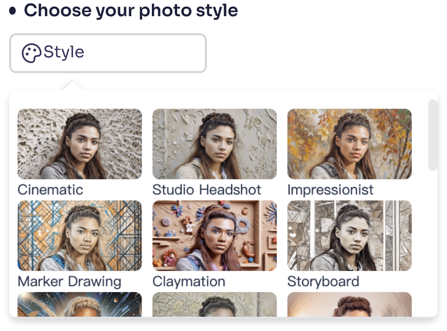 이제 제공되는 AI 키스 사진 스타일 중에서 선택하세요. 스튜디오 수준의 헤드샷부터 미래형 공상과학 키스 초상화까지, Vidqu AI 덕분에 완벽한 AI 키스 사진을 쉽게 만들 수 있습니다.