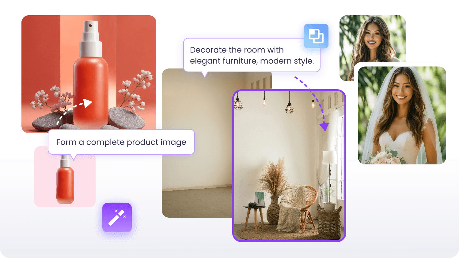딥러닝 AI를 기반으로 사용자가 지시하는 대로 사진을 정확하게 변환합니다. 전체 워크플로는 빠르고 쉽습니다. 사진을 업로드하고, 지침을 입력하고, 새 이미지를 다운로드하세요.